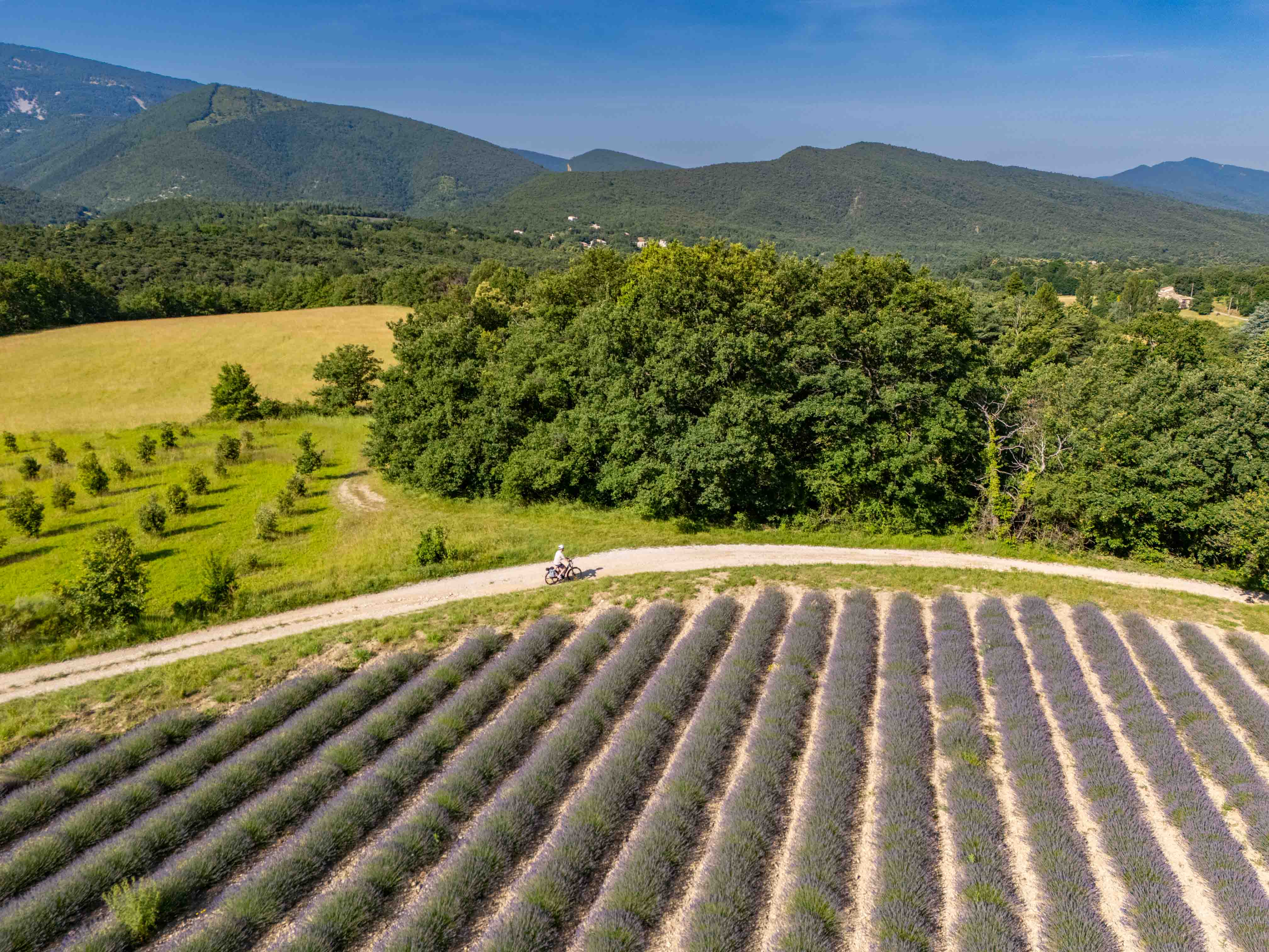 Bienvenue à Die ! Nous vous accueillons à notre camp de base et vous remettons vos complices de voyage : les vélos électriques équipés et votre Appli. Aujourd’hui, vous roulez au pied de ce massif, dans le Diois aux influences à la fois alpines et provençales. Vous visitez des petits villages perchés et passez par 2 cols aériens, d'où la vue est féérique sur les falaises du Sud Vercors.