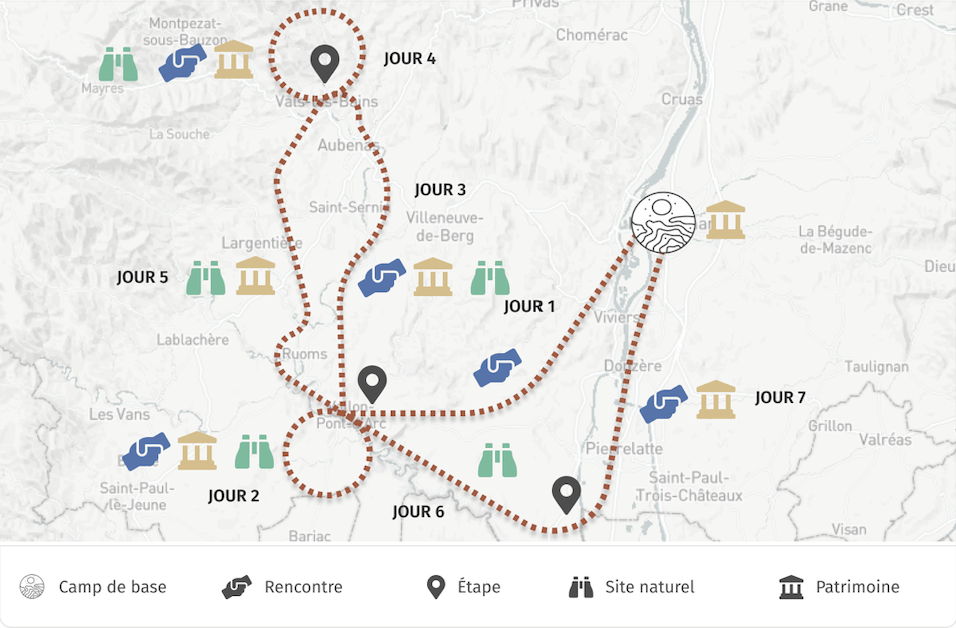 Durant ces sept jours de voyage, au rythme doux de votre vélo cargo électrique Yuba All Terrain, vous découvrez l’Ardèche méridionale avec ses paysages de garrigue, ses cigales, son climat ensoleillé et ses villages perchés, pittoresques et baignés de lumière… Les gorges de l’Ardèche que vous longez, aussi mythiques que sauvages, vous offrent des points de vue spectaculaires. Ce voyage lent consiste à prendre le temps d'apprécier ce que vous découvrez, à aller à la rencontre de soi et de l’autre… Et pour que votre voyage soit le plus ressourçant et immersif possible, Chemins vous ouvre son carnet de bonnes adresses pour rencontrer des acteurs du territoire, dont les produits font la renommée du territoire.